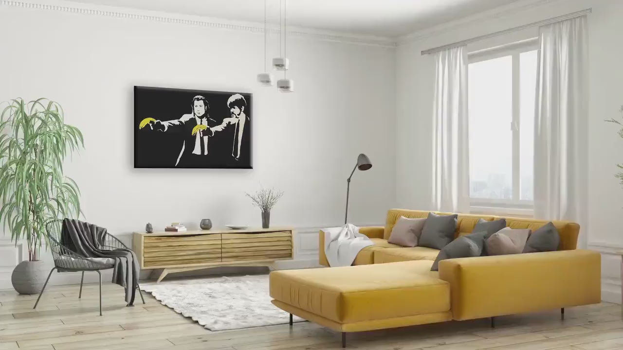Add a touch of urban art and pop culture to your space with this iconic Banksy Pulp Fiction canvas wall art. Featuring the famous graffiti artwork inspired by the classic movie, this poster print is the perfect addition to your urban-themed decor.